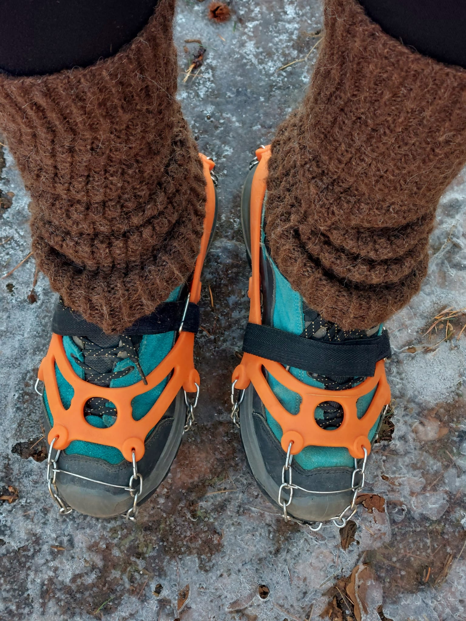 1) Indossateli sempre dove il terreno è ghiacciato o scivoloso, ma fatelo prima di incontrare il tratto insidioso che fermarsi a metà o dopo una caduta non è una genialata😅 (anche questo testato per voi👍)